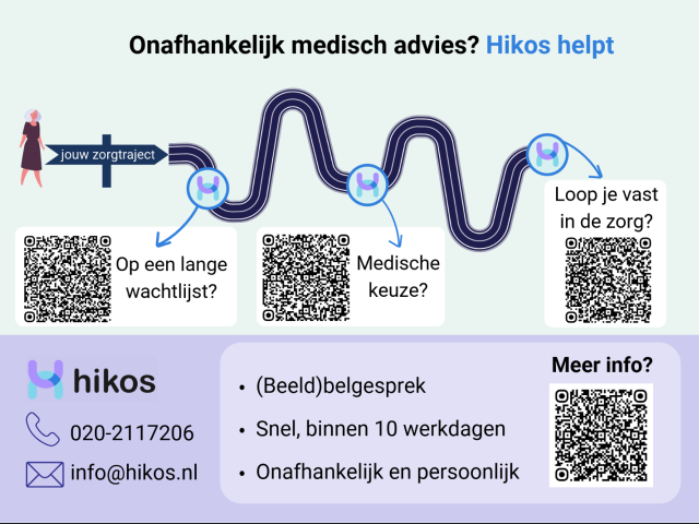 Hikos is een onafhankelijke zorgaanbieder gevestigd in Amsterdam. Wij ondersteunen mensen die vastlopen in het zorgsysteem, twijfelen over een behandeling of kampen met aanhoudende klachten. Via ons platform krijgen zij een digitale second opinion met een medisch specialist.